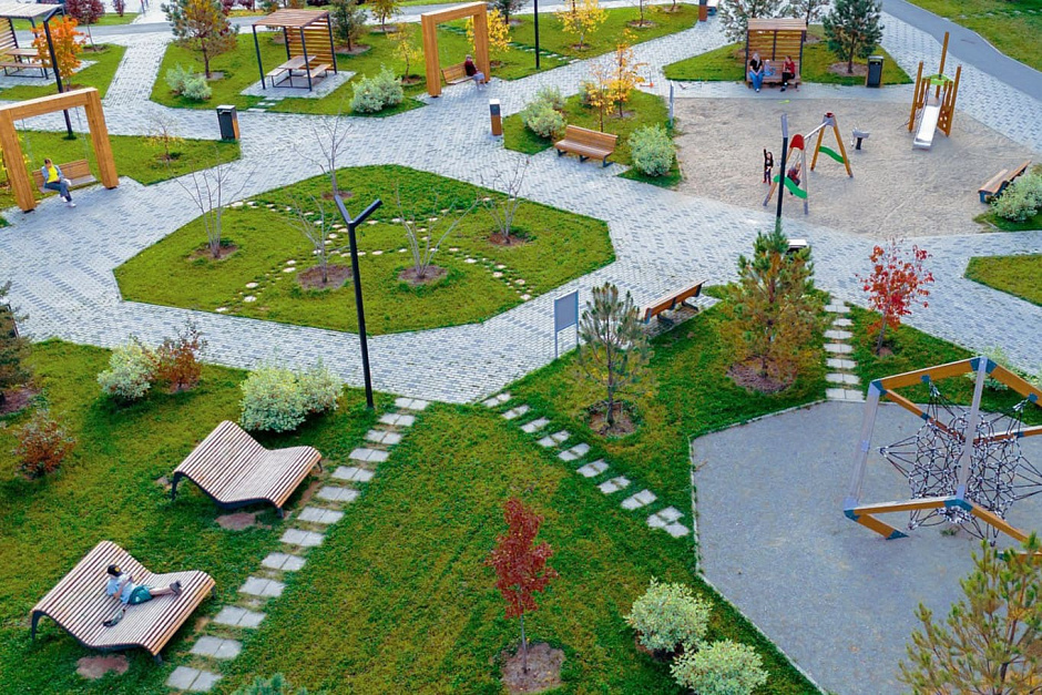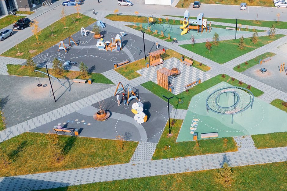 • Дворы, где большую часть занимают спортивные и игровые комплексы, зеленые зоны для прогулок.