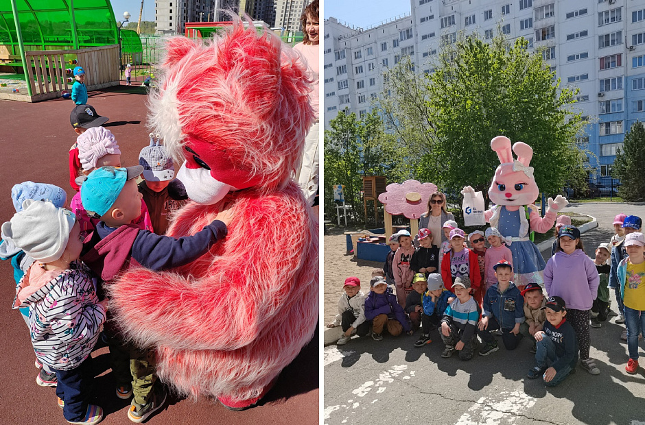 Ростовые куклы Зайка и Медведь принесли саженцы кедров в детские сады микрорайона. Герои рассказали ребятам о том, какое значение имеют зеленые насаждения и о том, что природу нужно беречь и охранять. Дети были очень рады гостям, активно принимали участие в посадке кедров и с удовольствием поливали саженцы.
