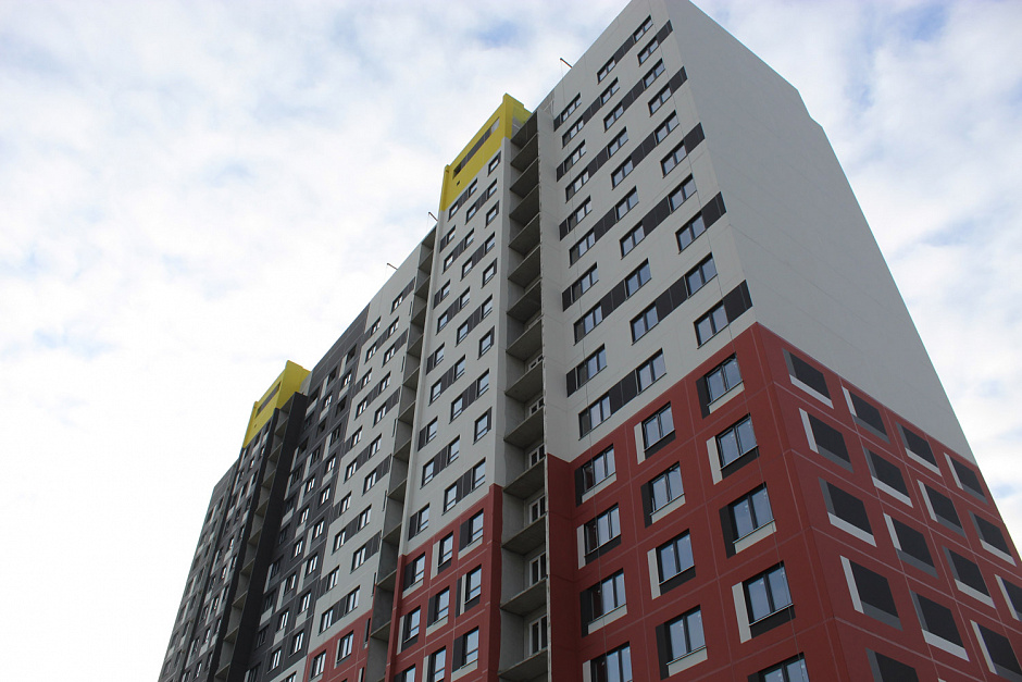 Все блок-секции смонтированы на 100%. В октябре приступили к окраске фасада: на 50% выполнена окраска фасада одной из блок-секций. Продолжается монтаж окон: более 60% оконных блоков установлено. Также в октябре приступили к монтажу отопления, электромонтажным и штукатурным работам.
