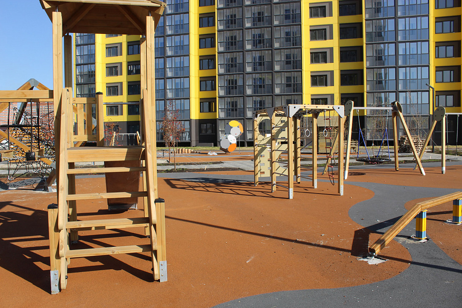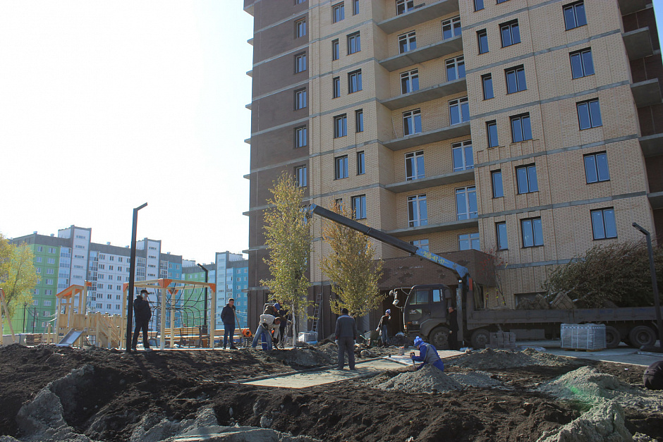 Специалисты установили оборудование на детской площадке, малые архитектурные формы, выполнили сезонную высадку растений на придомовой территории. В ближайшее время завершатся работы по укладке брусчатки.